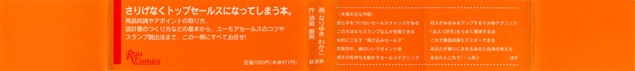 生命保険の新人セールスレディが、トップセールスレディになるまでを描いた、なりゆき先生最初のHow To本、「知的セールスレディの方法」のオビです。